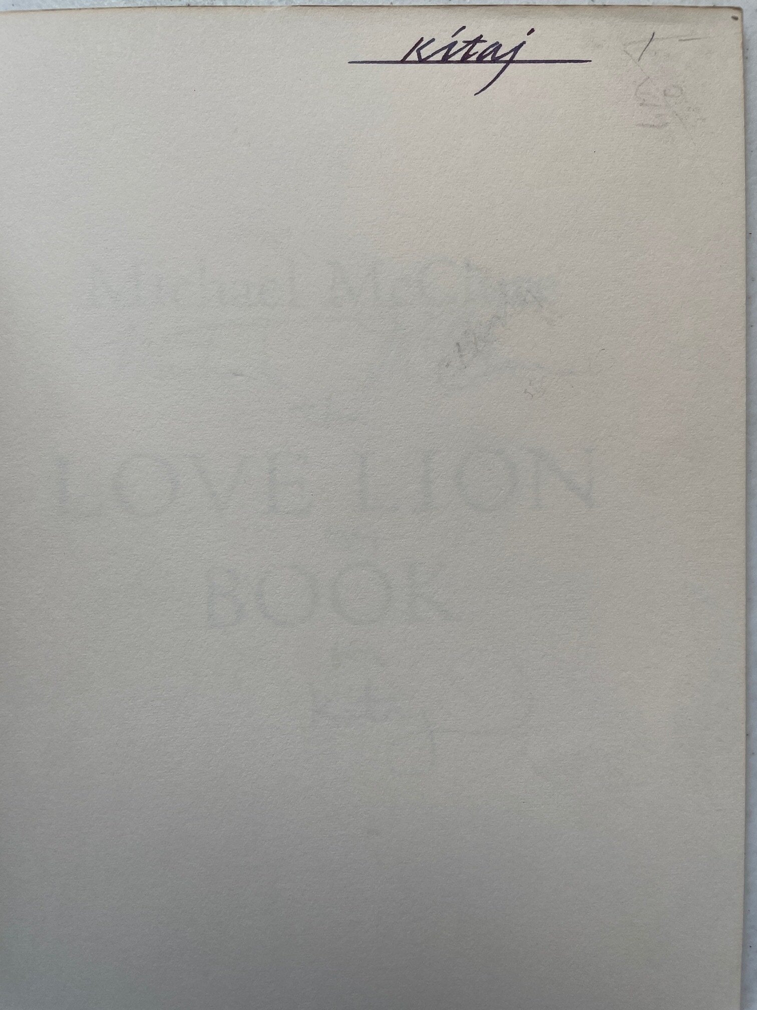 Love Lion Book by Michael McClure [signed R. B. Kitaj copy]
