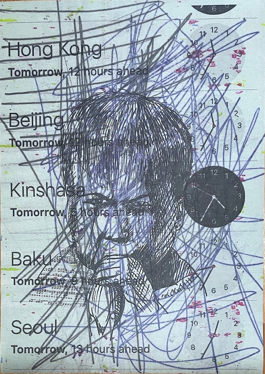 From a series of double-sided posters by Oscar Murillo, in collaboration with Mandy El-Sayegh and Yutaka Sone, produced on the occasion of “Room Services,” a live multi-day drawing and printing performance specially organized for Printed Matter’s 2016 New York Art Book Fair at MoMA PS1.